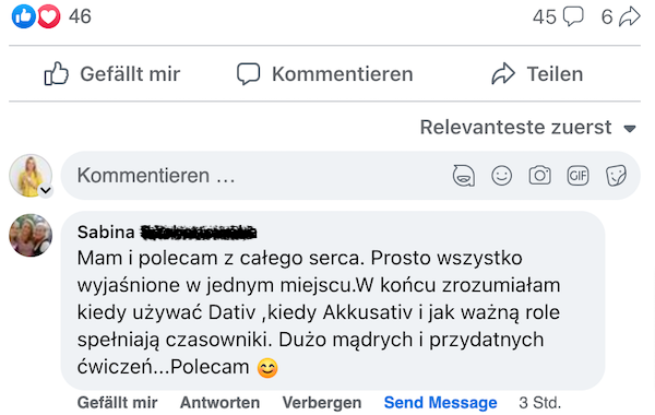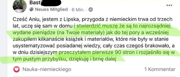 "To najlepsze materiały to nauki języka niemieckiego, jakie kiedykolwiek powstały. Pomogły mi bardzo w zdaniu egzaminu B1 ÖSD."