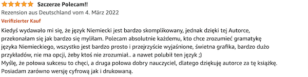Książka, która w krótkim czasie stała się bestsellerem. W autorski i banalnie prosty sposób wyjaśniam w niej najważniejsze zasady gramatyki, które pozwolą Ci zacząć swobodnie mówić po niemiecku.
