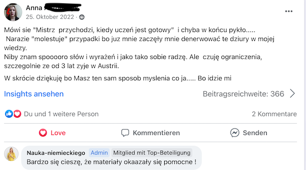 Od kliku lat tworzę autorskie programy do nauki języka niemieckiego w wielu językach, które pomogły już tysiącom osób zrobić spektakularne postępy w nauce.